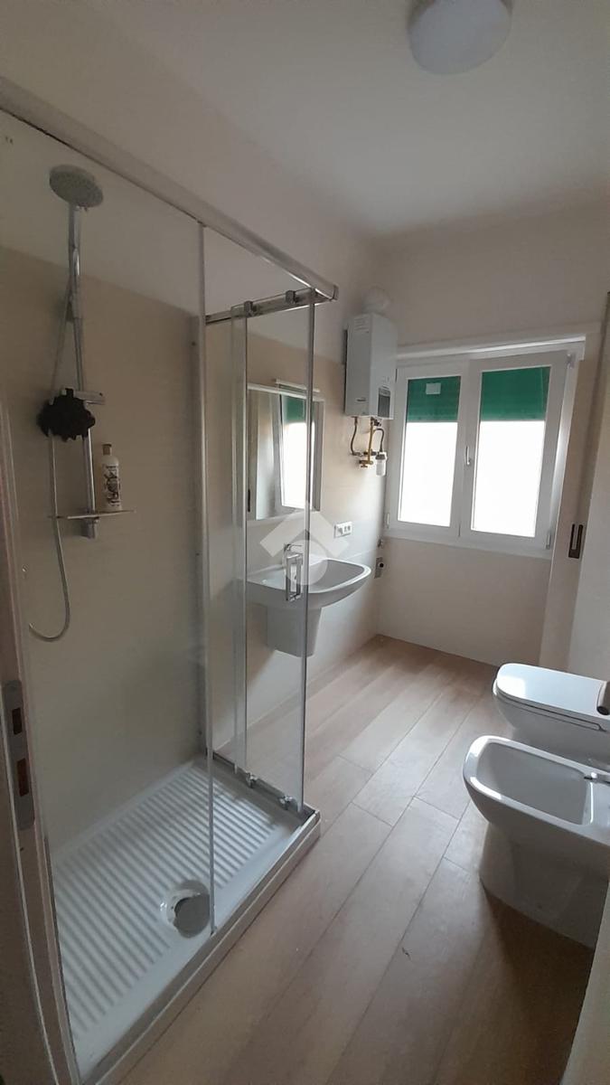 L'appartamento internamente si compone di ampio ingresso, soggiorno con balcone, tre camere di cui una con bagno interno, bagno principale, cucina abitabile, ripostiglio e cantina. L’appartamento si presenta completamente ristrutturato. Viene locato arredato solo di cucina.
